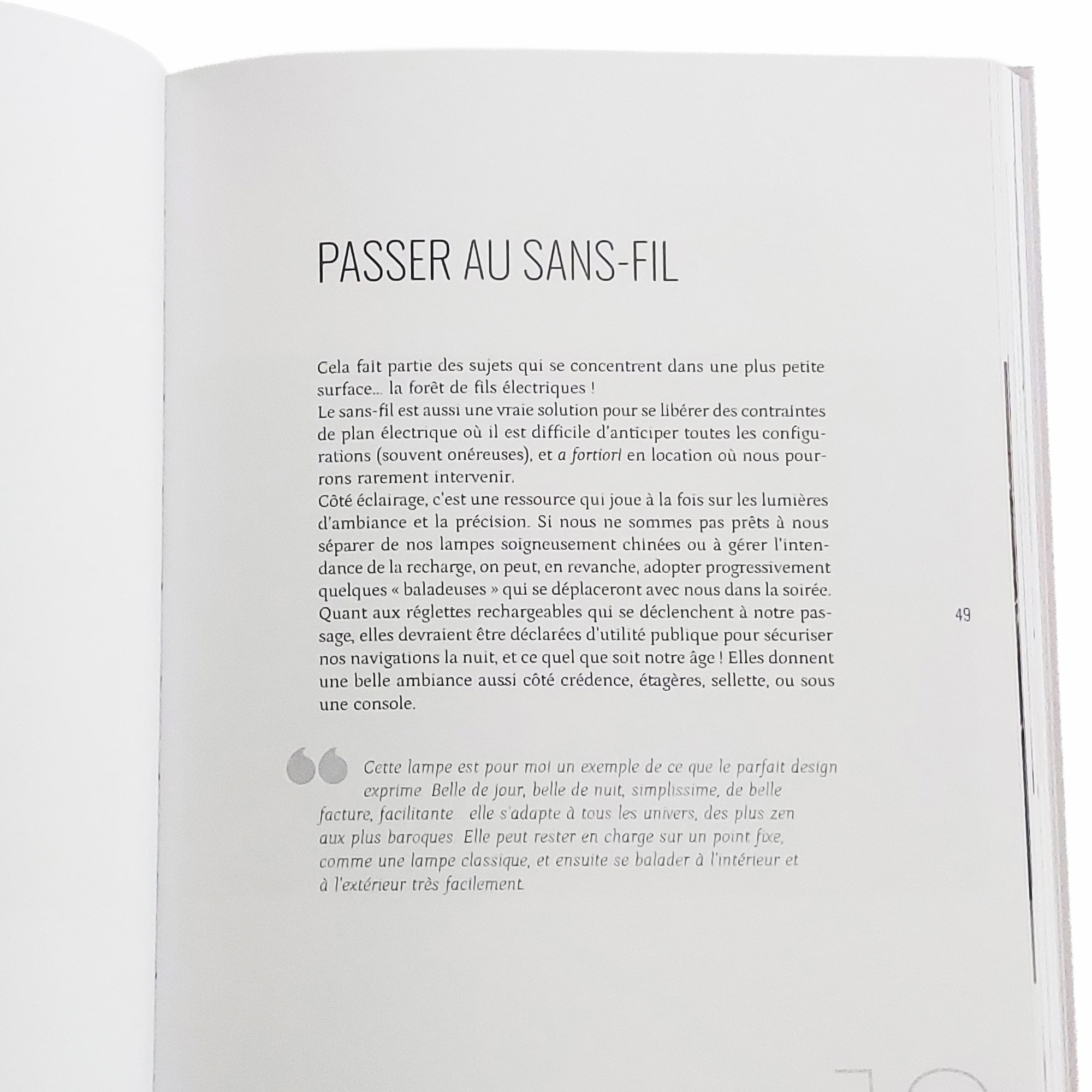 Ce livre propose des solutions pratiques et inspirantes pour concevoir un intérieur à la fois fonctionnel, esthétique et apaisant. La LUXCIOLE apparaît en page 48 au chapitre "passer au sans fil".