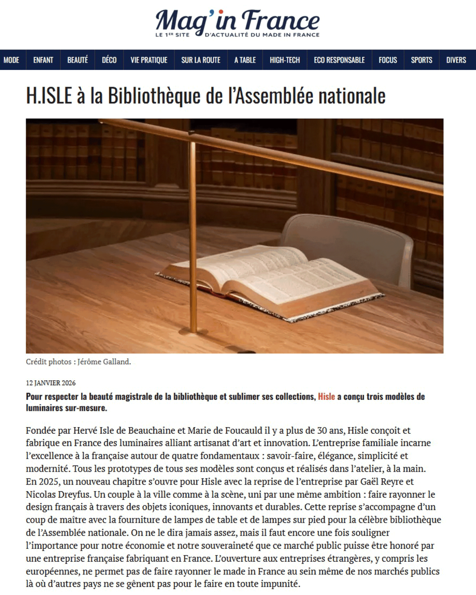 Nathalie et Renaud Jourdain mettent en avant le projet H.ISLE pour la bibliothèque de l’Assemblée nationale ainsi que les actualités de la marque