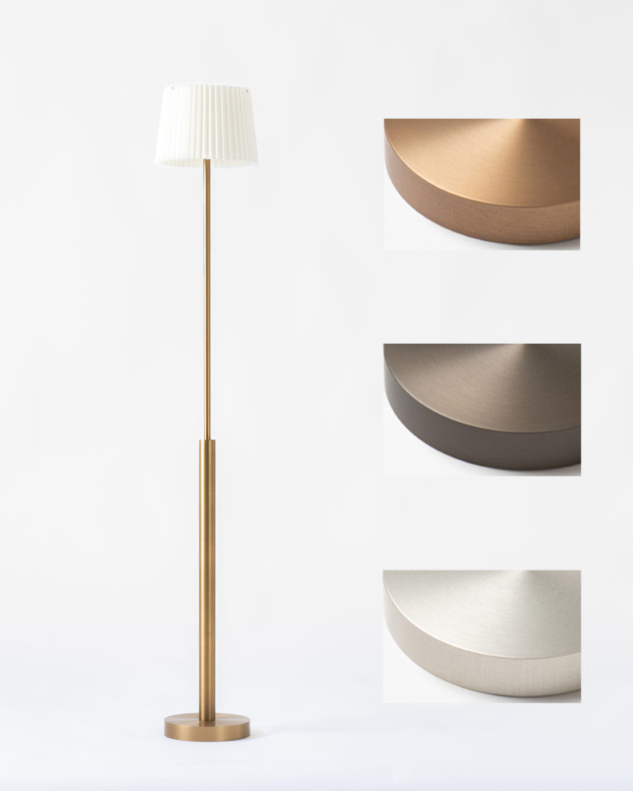 Finitions : Anodisé bronze, argent fumé ou argent / abat-jour plissé