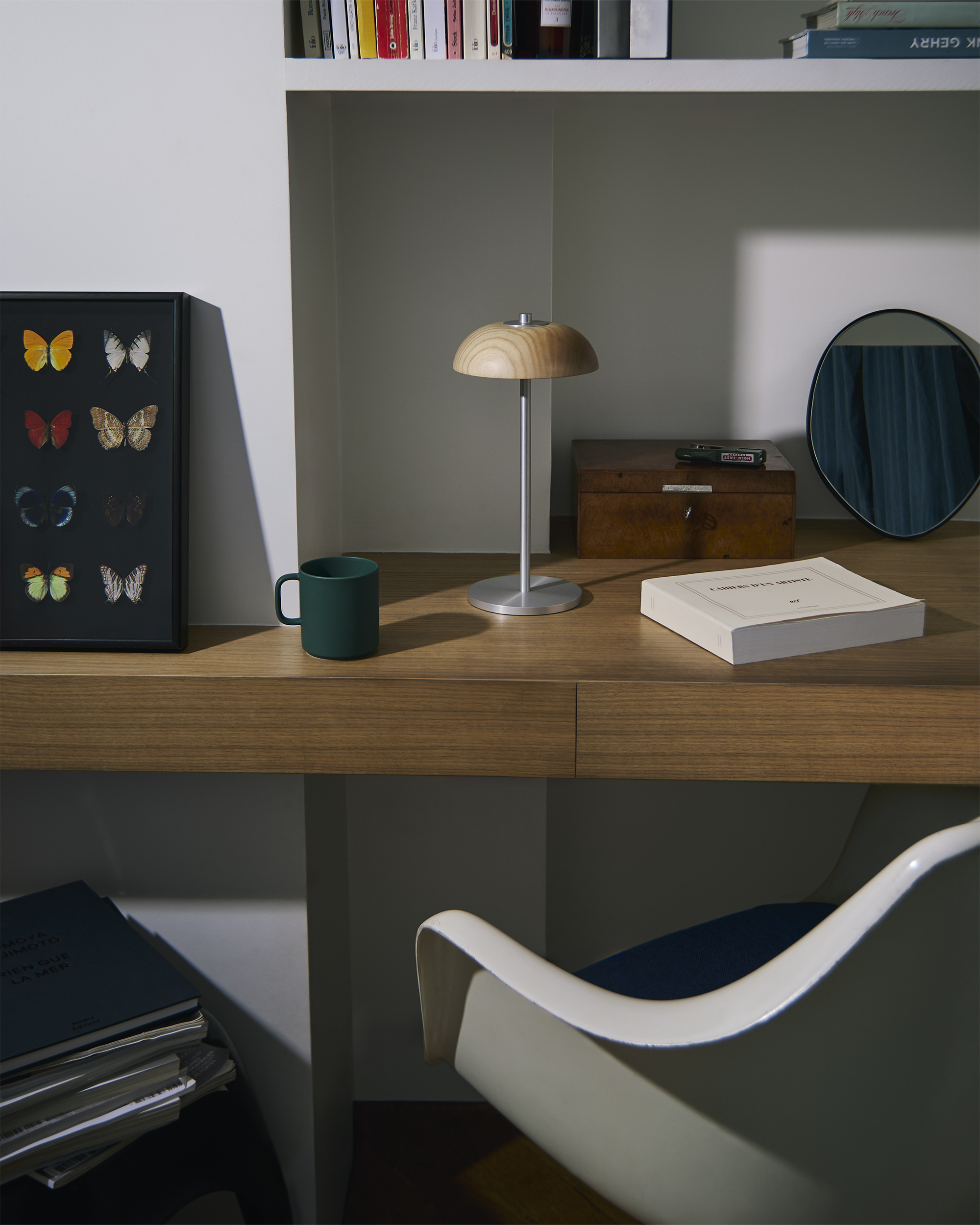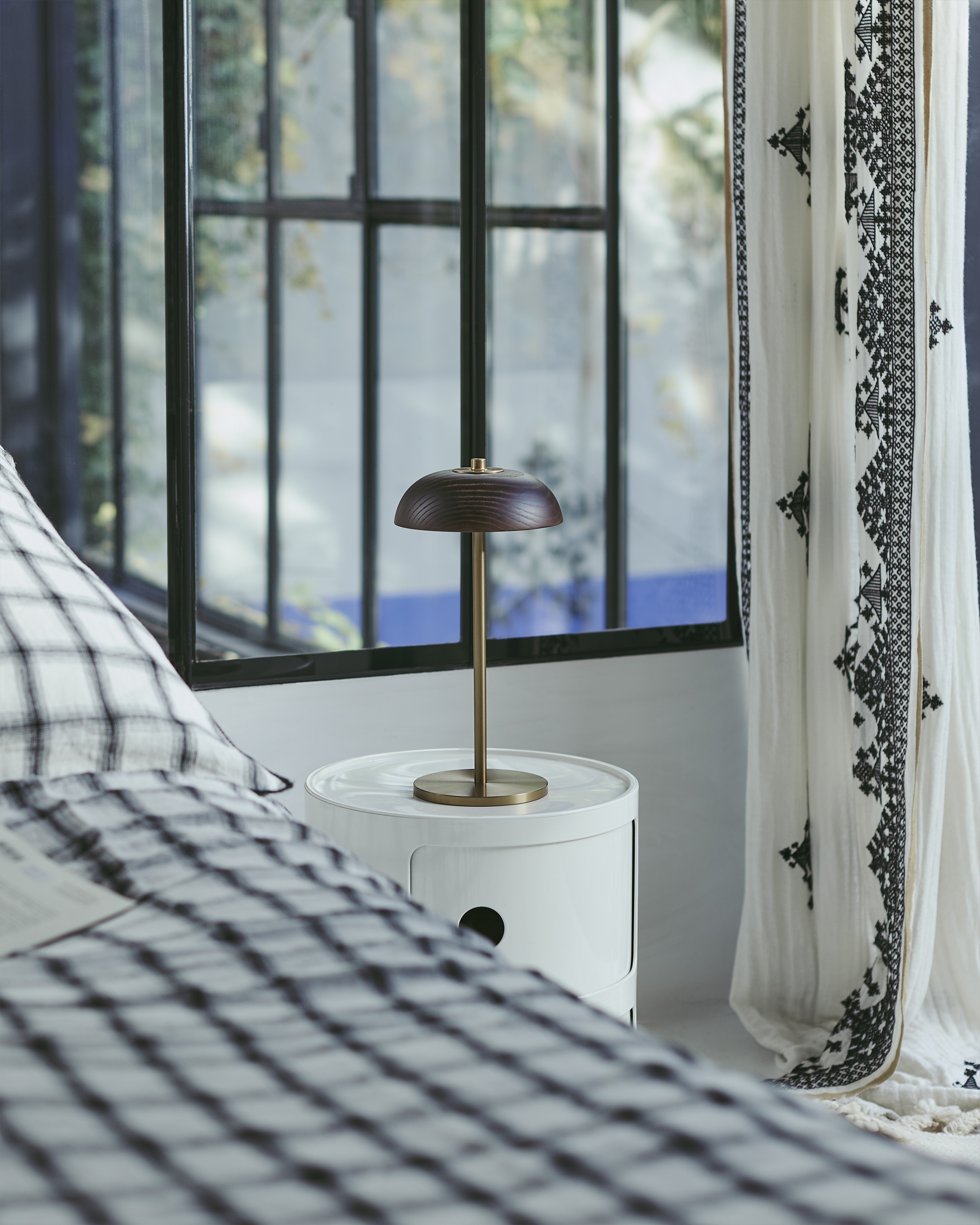 Alliant la sensualité du bois massif et les lignes épurées du métal, la BOLACHA est une édition HISLE. Dessinée par la designer portugaise Monica Hedderich, puis repensée et fabriquée à sa demande, cette lampe de table sans fil à batterie rechargeable, incorpore la technologie et le savoir-faire de la maison HISLE, à l’instar de l’iconique LUXCIOLE. La BOLACHA se caractérise par un abat-jour tout en rondeur et une finition anodisée. Son  interrupteur tactile au sommet permet de varier son intensité lumineuse.