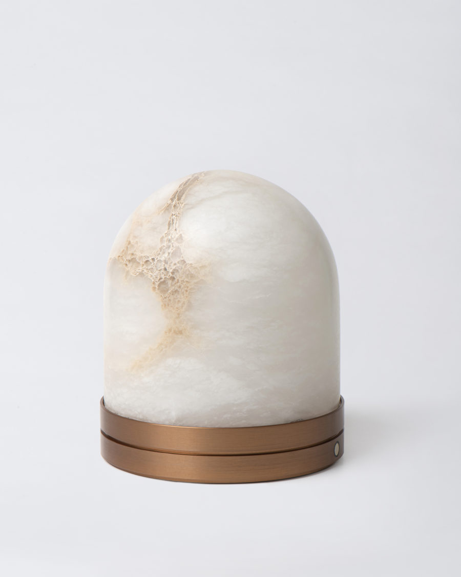 Matériaux : Pierre d’albâtre naturel, socle aluminium anodisé